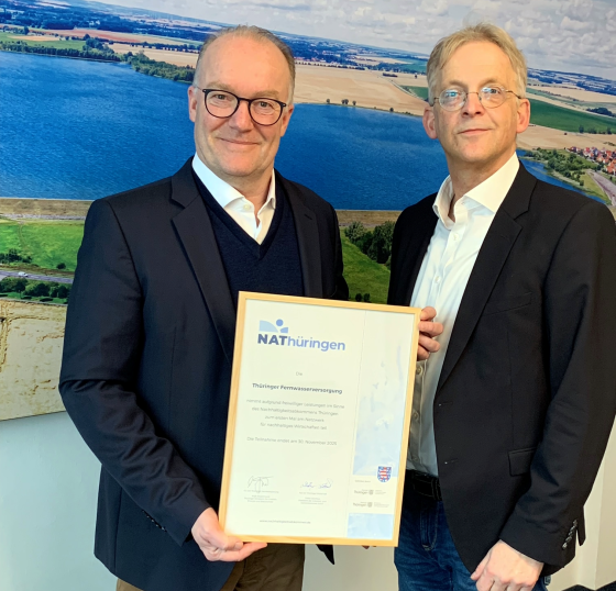 Um bei dem NAThüringen mitwirken zu können, müssen freiwillige Leistungen erbracht werden, die das Thema Nachhaltigkeit in den Fokus rücken. Hier wurden die Zertifizierung der TFW als familienfreundlicher Arbeitgeber und ihr bestehendes Energiemanagementsystem berücksichtigt. Auch für die Zukunft plant die TFW weitere nachhaltige Projekte. Durch die Teilnahme gehört sie nun zu einem Netzwerk aus knapp 700 öffentlichen und privatwirtschaftlichen Einrichtungen, Unternehmen, Verbänden und Organisationen, die alle in Thüringen angesiedelt sind. Ende Januar überreichte Steffen Schulz, als Vertreter der IHK und somit Kooperationspartner des NAThüringen, der TFW das Teilnahmezertifikat.