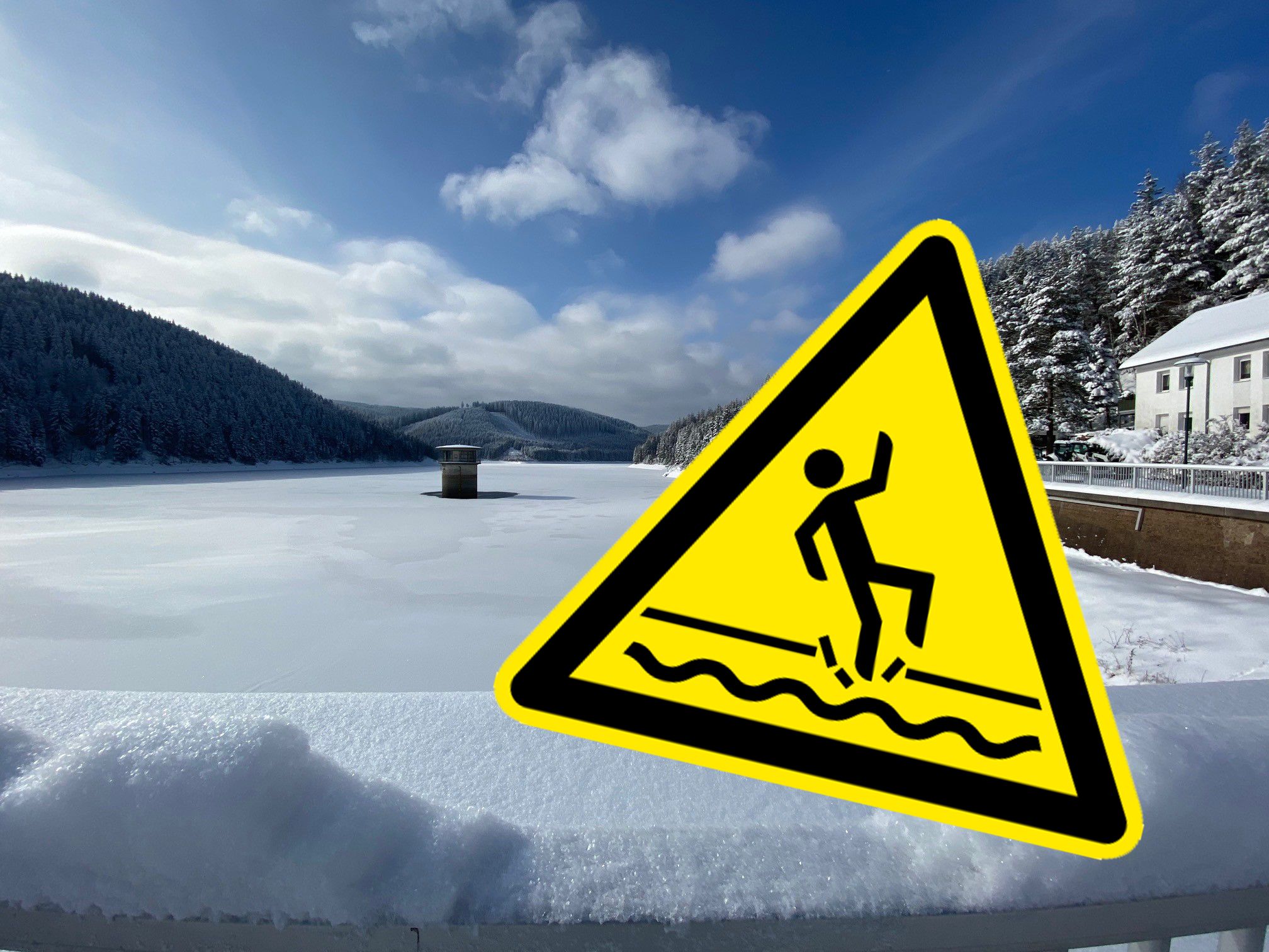 Die vermeintlich stabile Schicht trügt. Die Eisfläche ist nicht tragfähig. Anders als bei natürlichen Seen schwankt an Talsperren der Wasserspiegel. Ist die Eisdecke geschlossen und das Wasser darunter senkt sich, entstehen Hohlräume und es kommt zu Bruchstellen in der Eisschicht. Die trügerisch anmutend geschlossene Eisdecke wird so zur lebensbedrohlichen Falle. Auch die Eisfreihalteanlagen für die wesentlichen Betriebseinrichtungen der großen Stauanlagen schwächen die Eisschicht. Aufsteigende Luftblasen verhindern die Bildung einer geschlossenen Eisdecke an beispielsweise den Wasserentnahmetürmen oder Mauerbereichen.