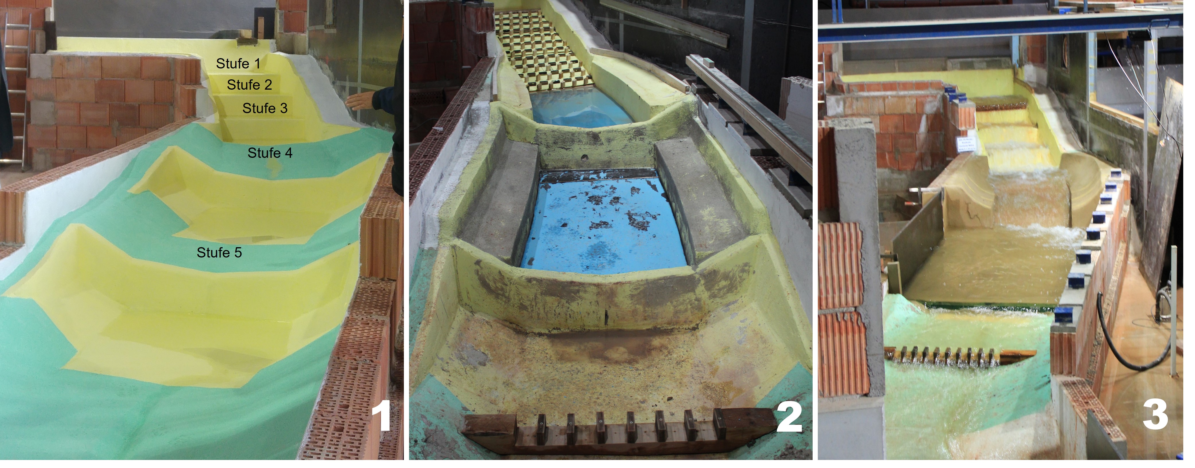 Es erfolgten Modellversuche, deren Ziel der Nachweis der hydraulischen Wirkungsweise für die Betriebseinrichtungen unter geänderten hydrologischen und betrieblichen Randbedingungen war. Geprüft wurde, welche baulichen Maßnahmen erforderlich sind, um die Belastung der Bausubstanz bei Hochwasserereignissen so gering wie möglich zu halten.